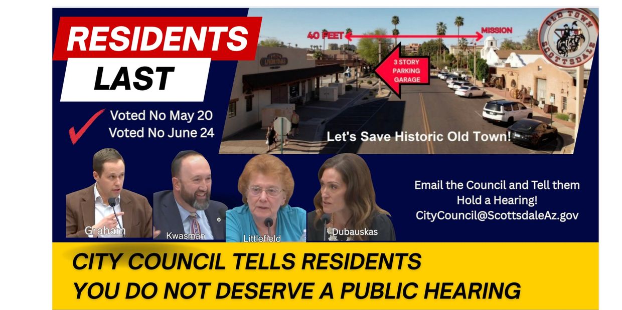 After the Mayor proposed a new task force for Westworld stakeholders, Graham, Dubauskas, Kwasman, & Littlefield, voted against it saying: We don't need residents slowing the process. We trust the City manager to make decisions for you.